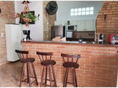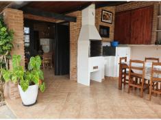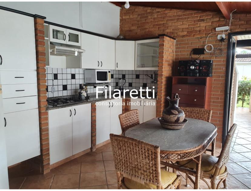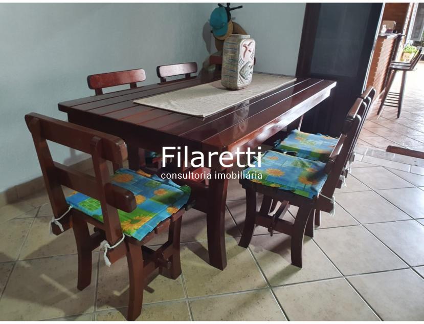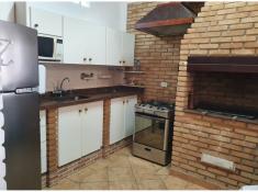 - 1 Cozinha americana, integrando com a área gourmet, com churrasqueira e mesa de madeira maciça para 12 lugares;