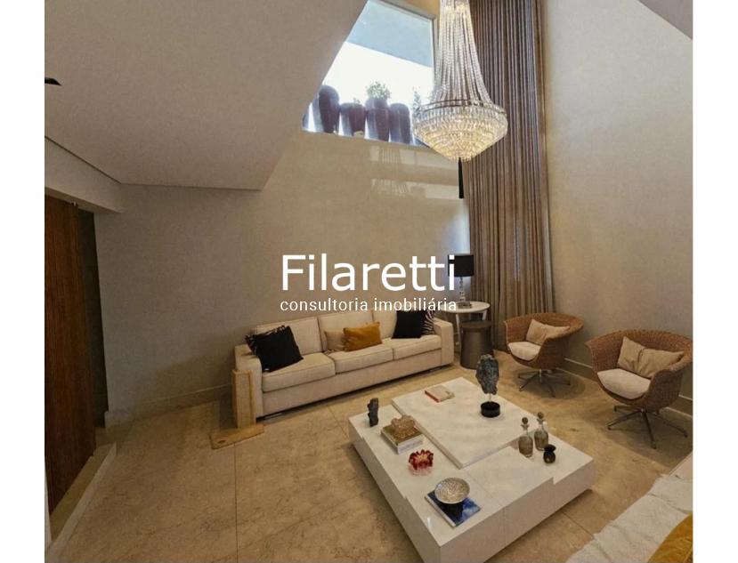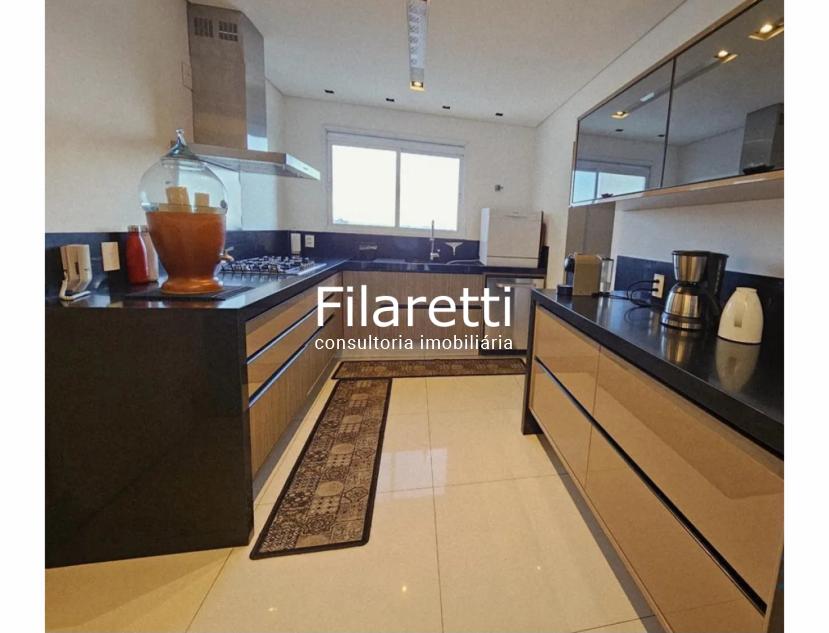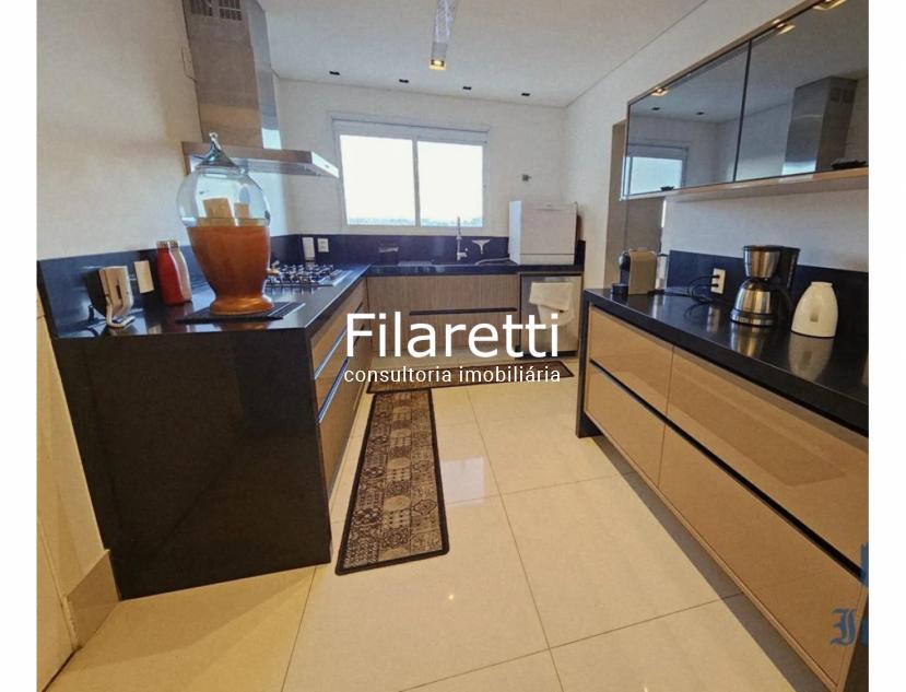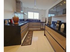 São 3 dormitórios (sendo 3 suítes), sala de 3 ambientes (com uma vista maravilhosa), cozinha planejada, banheiro social, lavabo, despensa, lavanderia, com elevador para acesso piso superior, espaço gourmet aconchegante, sala de TV, sala de música, escritório e 5 vagas de garagem cobertas.